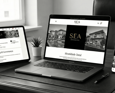 Aplicações: Declinação da marca para site, apresentações institucionais e materiais comerciais de alto impacto.
