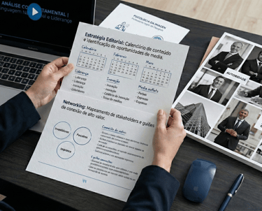 Plano editorial estratégico: Calendário de conteúdo (posts, artigos, vídeos) + identificação de oportunidades (podcasts, painéis, parcerias).